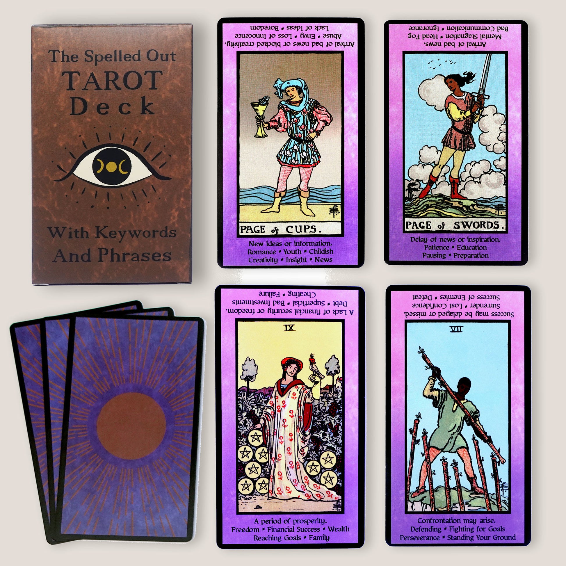 The Spelled Out Tarot Deck is the best deck for the new tarot reader. Each tarot card features phrases with keywords printed directly onto the face so beginner, and even professional, readers can focus on the intuitive aspects of tarot.